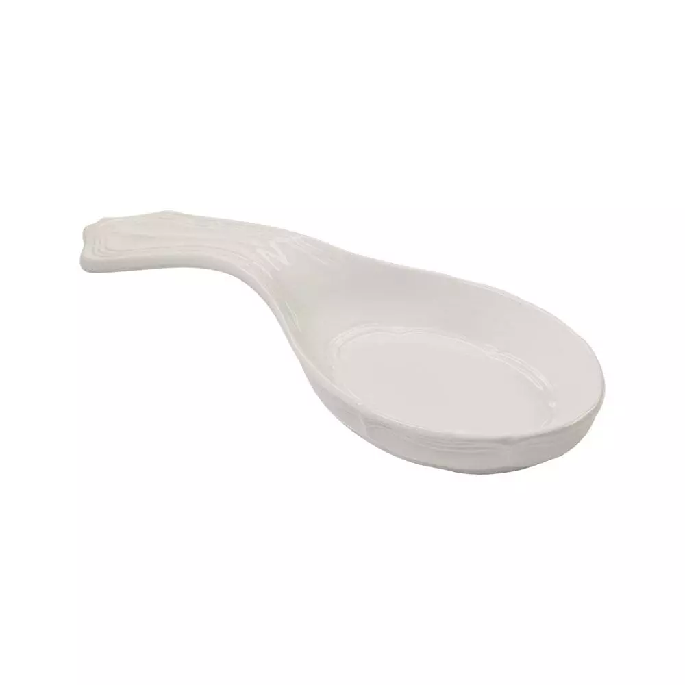 Gently scalloped edges and curves on these generous sized pieces add grace every time you set the table. Its rich cream color makes French Countryside a perfect base pattern to mix with colorful accent pieces. A best selling pattern, a complete suite of accessories is available to create a classically stylish casual dining statement. Expertly crafted from stoneware. Microwave and dishwasher safe. We usually think of a spoon rest on the stove, but use one whenever you need to protect your counter and table from messy flatware or utensils. Spoon rest measures 10 inch long.