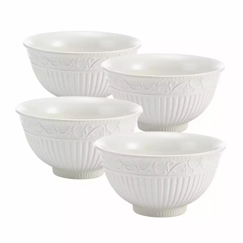 This Italian Countryside Set of 4 Footed Soup Cereal Bowls feature a footed base to elevate them and our classic Italian Countryside fluting and scroll design, and will create a classically stylish dining statement.