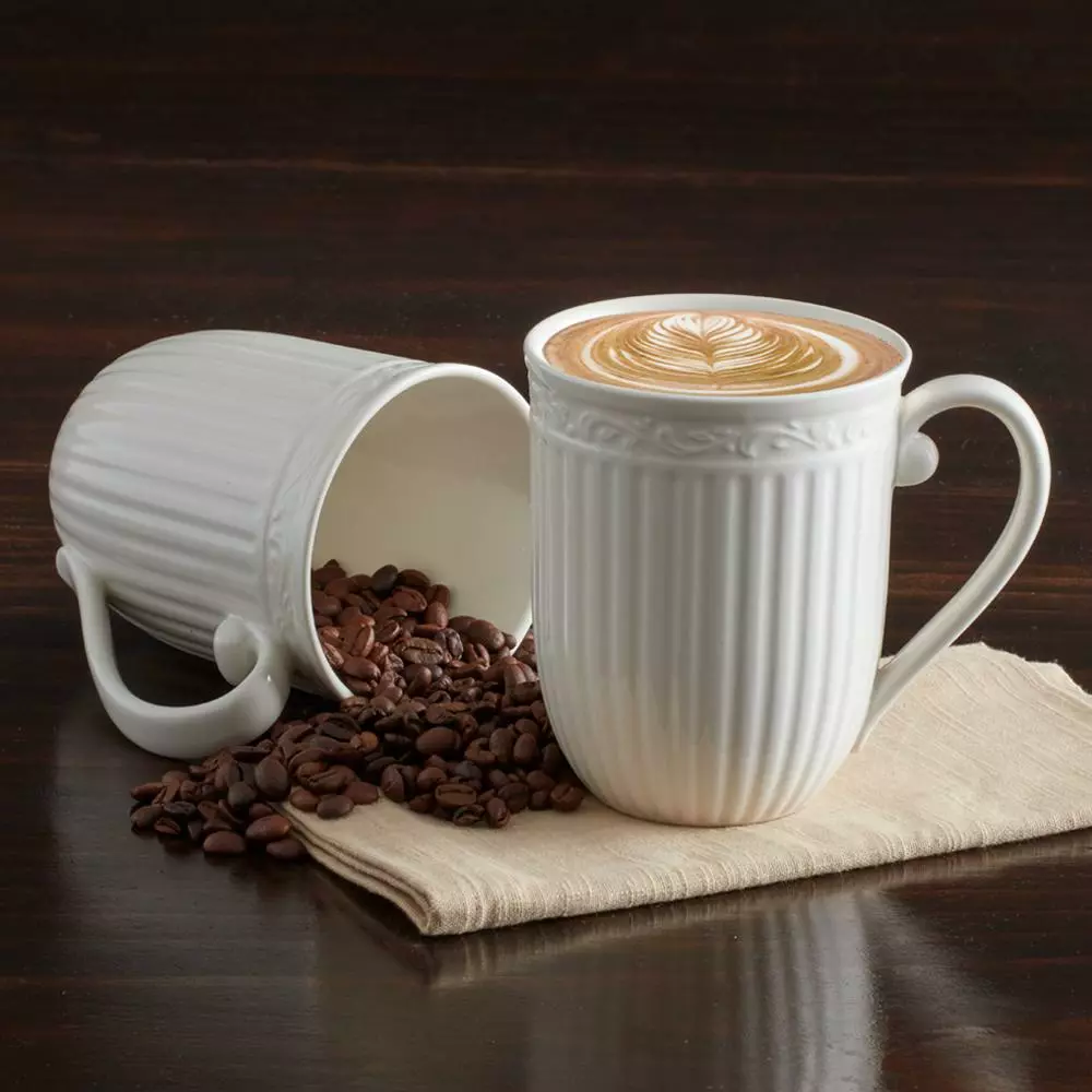 The fluted bands and column-like detailing of this dinnerware recall classical Italian architecture. A best selling pattern, a complete suite of accessories are available to create a classically stylish casual dining statement. Quality-crafted from stoneware, Italian Countryside is dishwasher and microwave safe. This tall mug measures 4-3/4 inch high and holds 18 ounces.