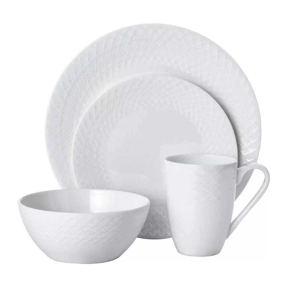 Perfect for both casual entertaining and everyday dining. Crafted of high quality bone china. 16 piece dinnerware set, service for four, includes (4) each: 10-1/2 inch dinner plate, 8-1/4 inch salad plate, 6 inch cereal bowl and 13 ounce mug. Microwave and dishwasher safe.
