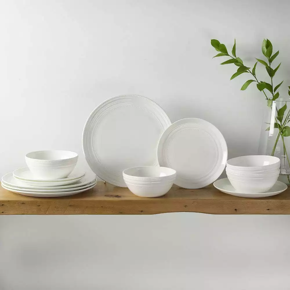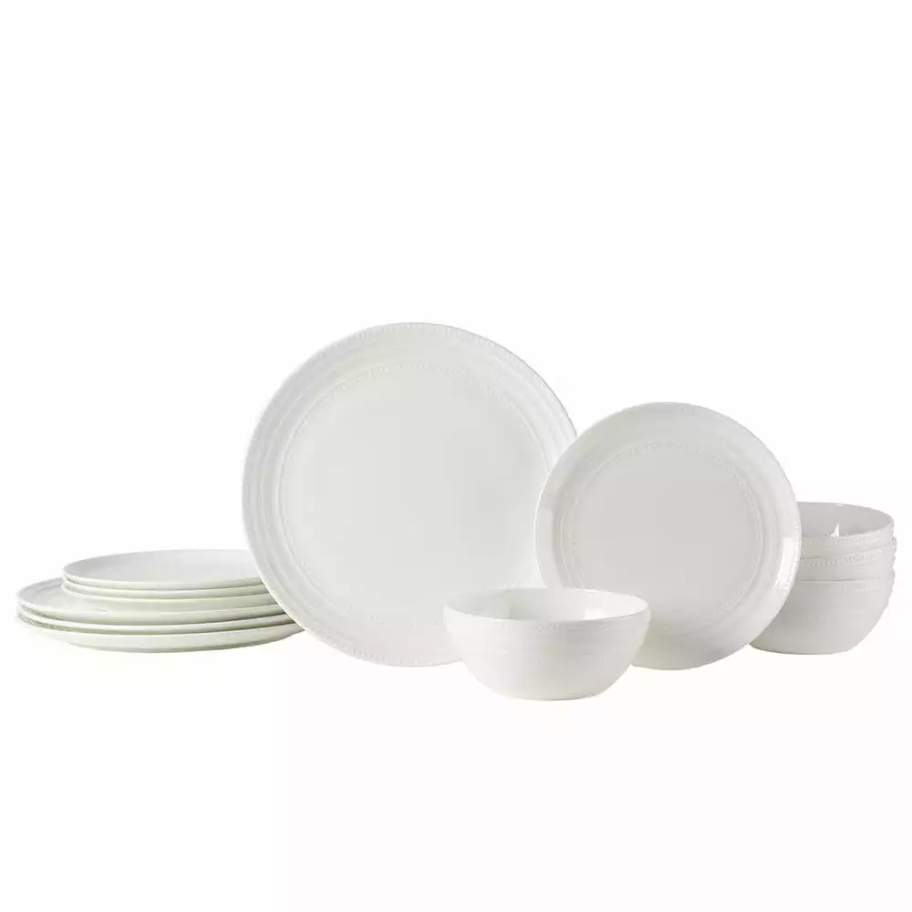 - Service for 4: This 12 piece dinnerware set includes (4) each of: 10-1/2 inch dinner plate, 8 inch salad plate, and 6 inch diameter (24 ounce) all-purpose bowl