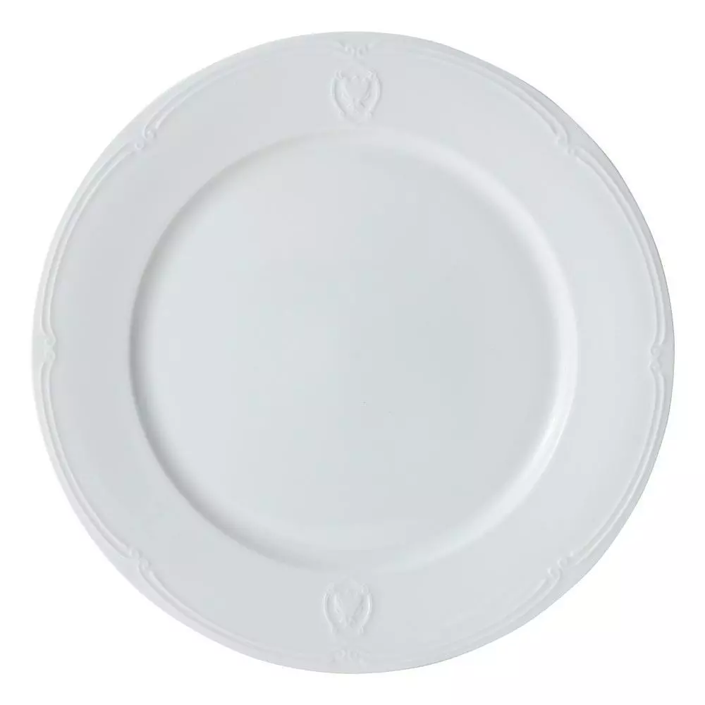 Wallace Napoleon Bee Dinnerware is crafted of durable, white porcelain, and adorned with an embossed bee accent. Microwave and dishwasher safe. Dinner plate measures 10-1/2 inch diameter.