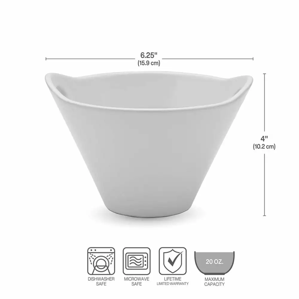 This Studio Nova Noodle Bowl with Chopsticks features a bowl with contemporary angles, a deep interior, plus two convenient cutout handles that the included chopsticks can easily slide through to keep the set stored together when not in use.