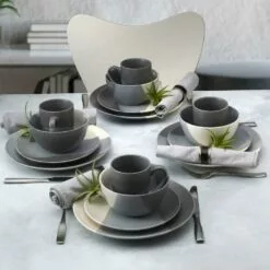 Buy ⌛ Mikasa® Swirl Ombre Graphite Square 16 Piece Dinnerware Set, Service for 4 ❤️