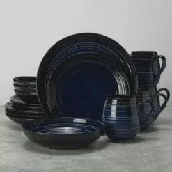 Cheap ✨ Mikasa® Swirl Black Coupe with Cobalt Ombre Accent 16 Piece Dinnerware Set, Service for 4 😀