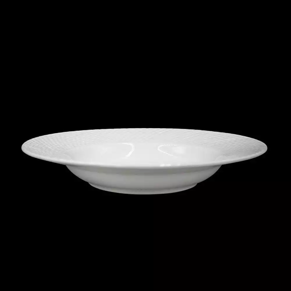 This Stanton Set of 4 Rim Soup Bowls create an eye-catching tabletop by combining classic white simplicity with modern design. A dramatic waffle pattern adorns the rim, creating depth and movement that will breathe new life into your dinner gathering.