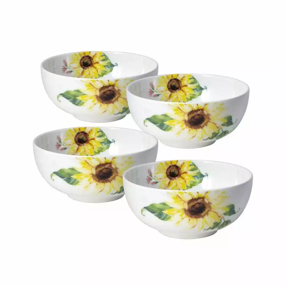 This Mikasa Sunflower Set of 4 Fruit Bowls feature a sunflower design in bold hues of pink, blue, yellow, and green, adding charm and a splash of color to your casual table setting.