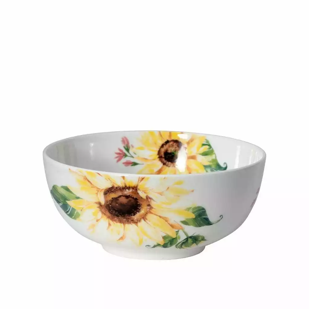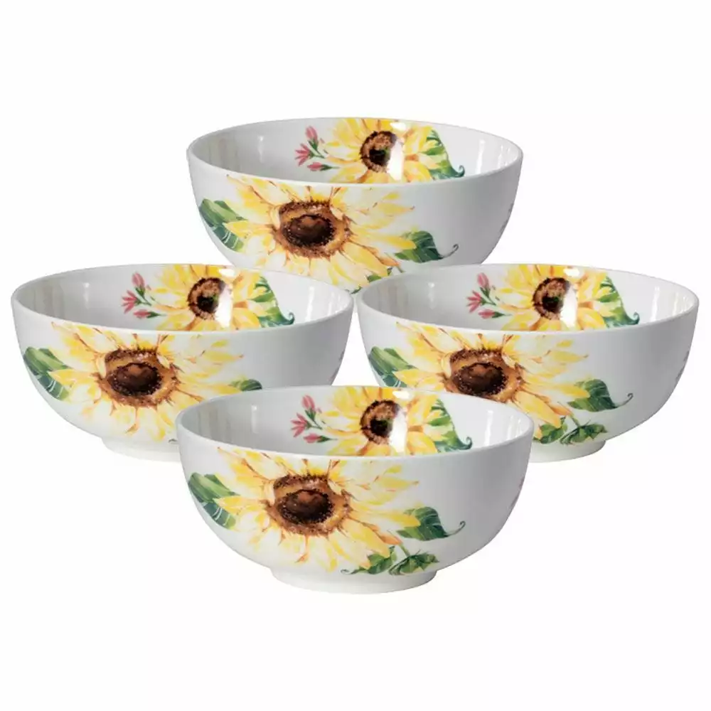 This Mikasa Sunflower Set of 4 Soup Cereal Bowls feature a sunflower design in bold hues of pink, blue, yellow, and green, adding charm and a splash of color to your casual table setting.