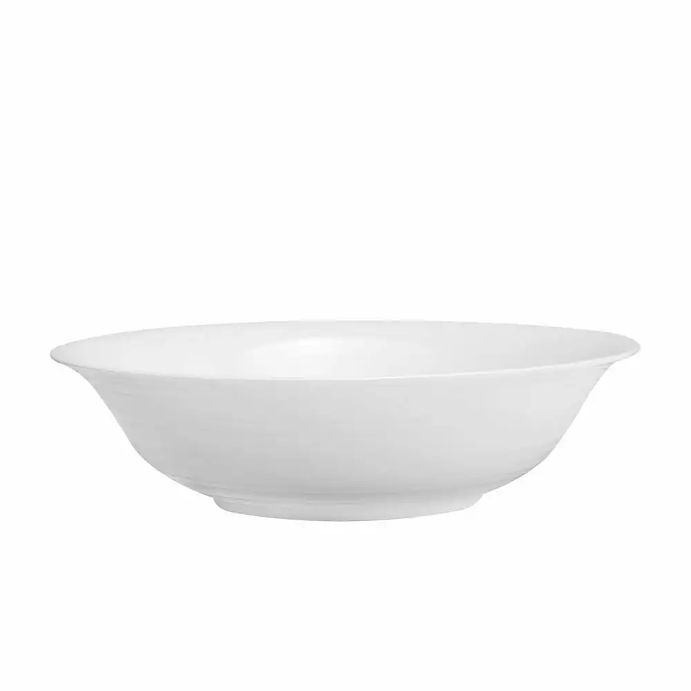 With a clean white surface and a striated line design around the rims, the simple elegance of Swirl Bone dinnerware will enhance the look of any stemware or flatware pattern. S Crafted of durable, chip resistant bone china. Microwave and dishwasher safe. Vegetable bowl measures 10 inch diameter x 2-1/2 inch high.