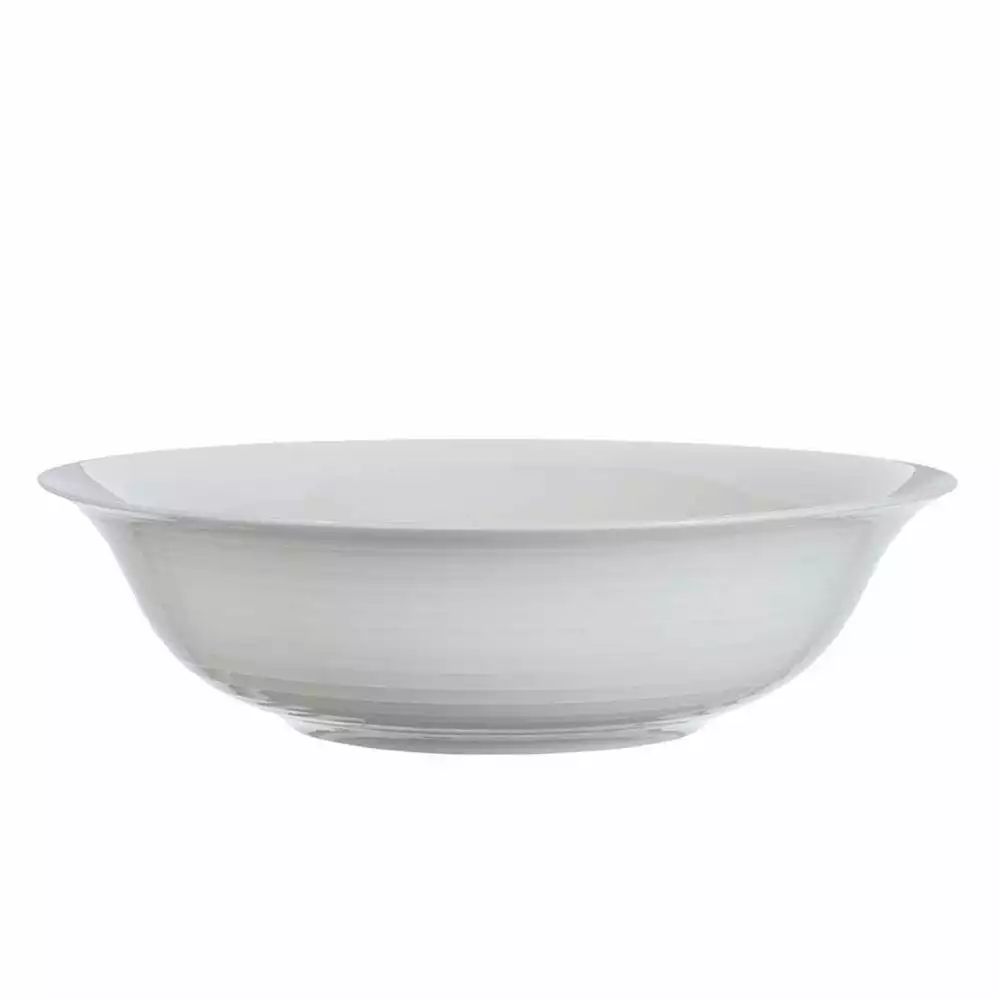 With a clean white surface and a striated line design around the rim, this design is stylish and understated. A versatile addition for special occasions or casual dining.