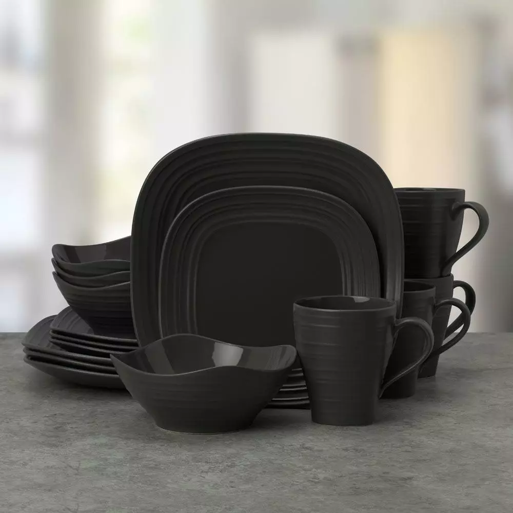 Best reviews of 🛒 Mikasa® Swirl Graphite Square 16 Piece Dinnerware Set, Service for 4 🔥