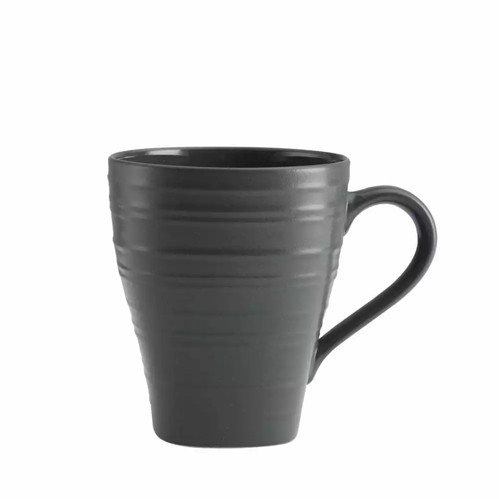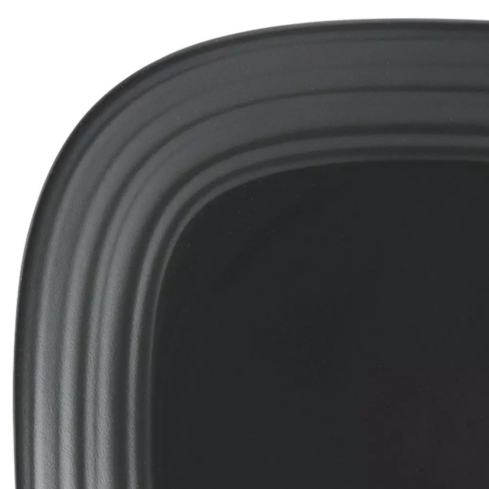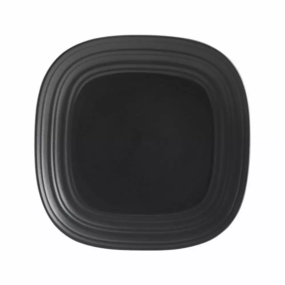 Swirl Graphite combines an organic shape, embossed texture, and dual, matte and shiny finish, for a truly modern look. The graphite color will add a bold touch, and a striking statement with its versatile style. Crafted of ironstone with a pin-firing technique which allows the entire bottom of the plate to be glazed, including the base. This process significantly reduces water absorption and increases chip resistance. 16 piece dinnerware set, service for four, includes (4) each: 10-3/4 inch square dinner plate, 8-1/2 inch square salad plate, 24 ounce square soup cereal bowl and 18 ounce square mug. Microwave and dishwasher safe.