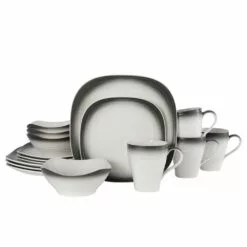 Swirl Ombre features clean lines in a rustic, earthy pattern with a matte and glossy finish, and beautifully graduated coloration, set a striking table setting. The soft rib on the outside of the collection offers a hand made look. Crafted of ironstone with a pin-firing technique which allows the entire bottom of the plate to be glazed, including the base. This process significantly reduces water absorption and increases chip resistance. 16 piece dinnerware set, service for four, includes (4) each: 11 inch square dinner plate, 8-1/2 inch square salad plate, 24 ounce square soup cereal bowl and 18 ounce square mug. Microwave and dishwasher safe.
