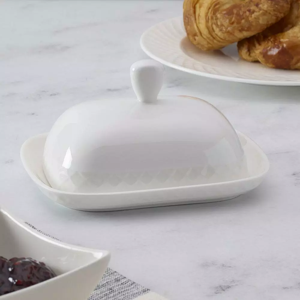 Promo 😉 Mikasa® Trellis White Covered Butter Dish ⭐