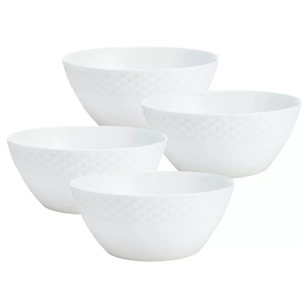 This Mikasa Trellis White Set of 4 Soup Cereal Bowls feature a contemporary, criss-cross line design framing each piece, creating eye-catching depth and movement on your tabletop. This casual and stylish set is perfect for everyday use.